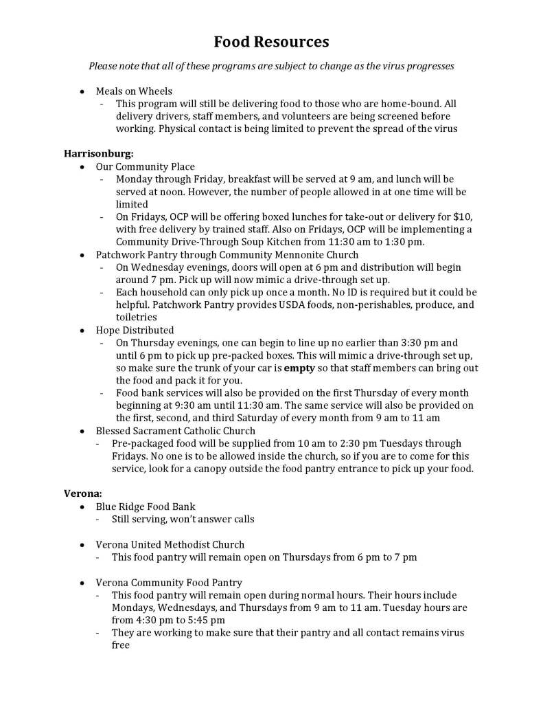 We wanted to make sure you all were aware of food resources that are still available during this difficult time.